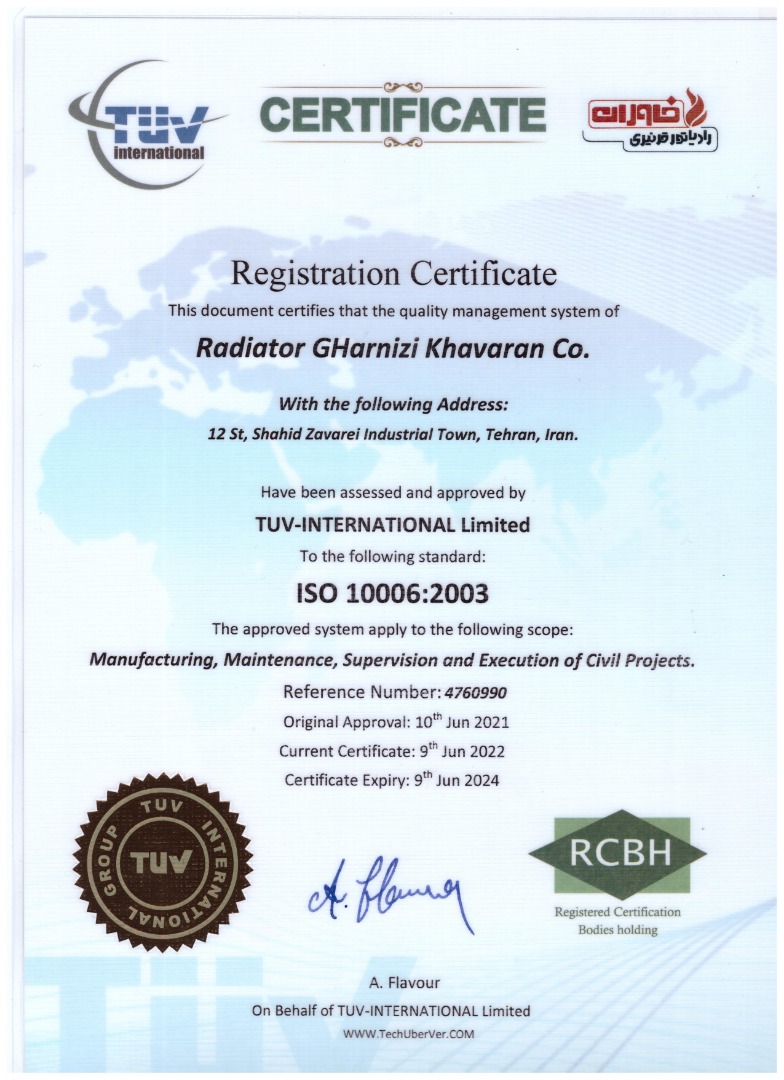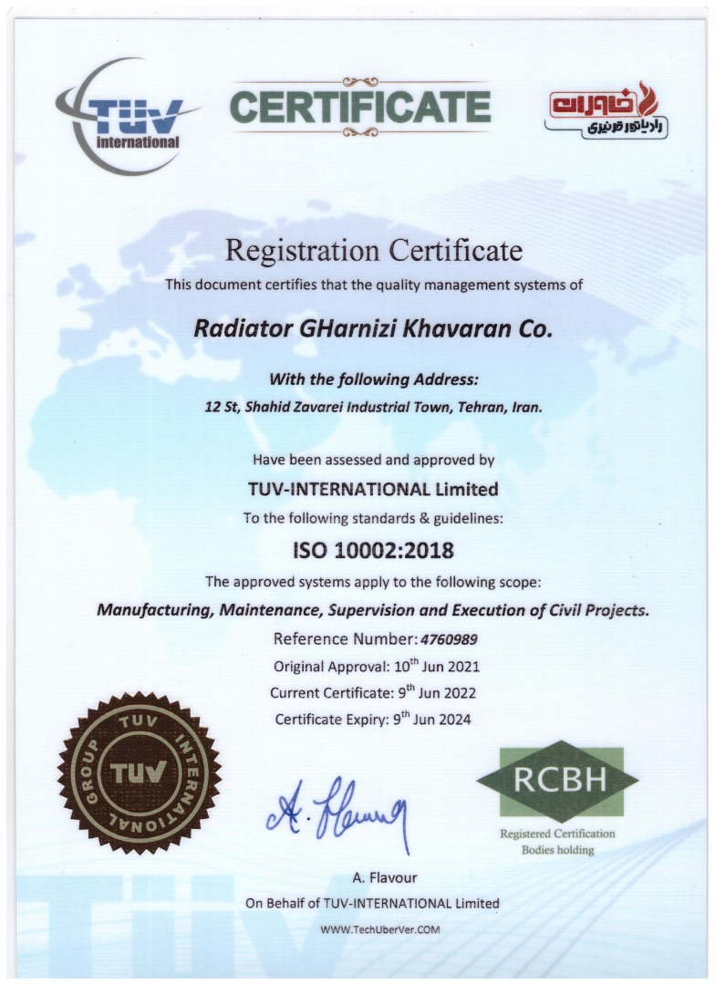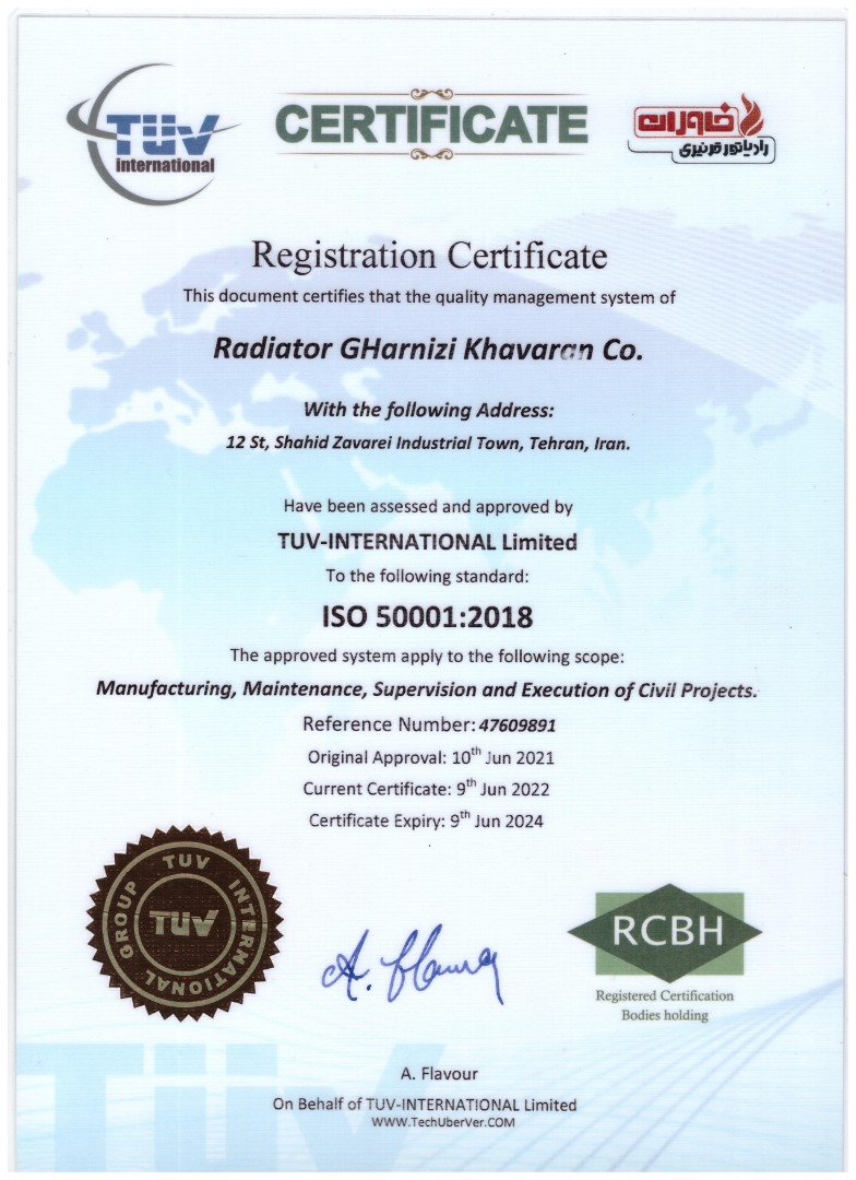 شرکت رادیاتور قرنیزی خاوران تنها تولید کننده انحصاری رادیاتور قرنیزی فن دار درایران با شماره اظهارنامه 50140003007788 که فعالیت خود را از سال 1391 درزمینه طراحی، تولید واجرای سیستمهای گرمایشی ، با بهره گیری از دانش فنی و خطوط تولیدی مدرن آغاز نموده وهمواره درتلاش بوده تا آسایش رابه گونه ای طراحی کند که علاوه برمدرن بودن از بازدهی بالایی نیز برخوردار باشد. مهندسان این مجموعه پس از مطالعات فراوان ، موفق به ابداع رادیاتورهای قرنیزی با روش انتقال گرما به صورت همرفتی، تابشی شدند وهمچنین توانستند نوع جدیدی از رادیاتور با سیستم گرمایش اجباری را ابداع نمایند که مطابق با شرایط آب وهوایی کشور عزیزمان دراختیار هموطنان گرامی قرارگرفته است . ما امیدواریم بتوانیم در این راستا خدمتی شایسته به صنعت ساختمان کشور عزیزمان بنماییم .
